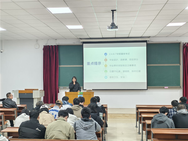 毕业班辅导员韩新宝老师结合2024届毕业生在就业、考研、考公、出国留学、参军入伍、三支一扶等方面的情况和当前严峻的就业形势,深入分析了2025届毕业生在就业中存在的主要问题,鼓励毕业生准确定位、降低期望值、锚定自己理想的目标单位和目标岗位,充分做好就业准备,积极参加校园招聘,学会主动出击,抓住一切就业机会,实现高质量就业。尤其就业有困难的学生要增强求职信心、不断积累就业经验,磨炼就业心理品质,尽快找到自身能力和岗位需求相匹配性的单位。