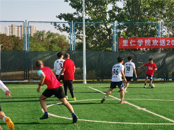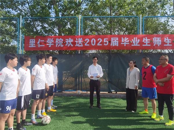 绿茵逐梦,情满校园。5 月 15 日下午,阳光洒满西校区第三体育场,由里仁学院团委和工会联合举办的欢送2025届毕业生师生校友足球友谊赛在这里举行。里仁学院党委书记张向前,副院长王春芳、赵新波,教师代表及院足球队毕业生队员参加此次比赛。学院正处级专职辅导员尚雪梅、党委副书记兼副院长张冬以及团委教师代表到场加油助威。2002级自动化专业校友王超、2013级工商管理专业硕士校友袁义特邀参与比赛。