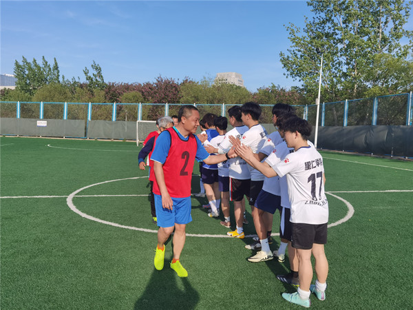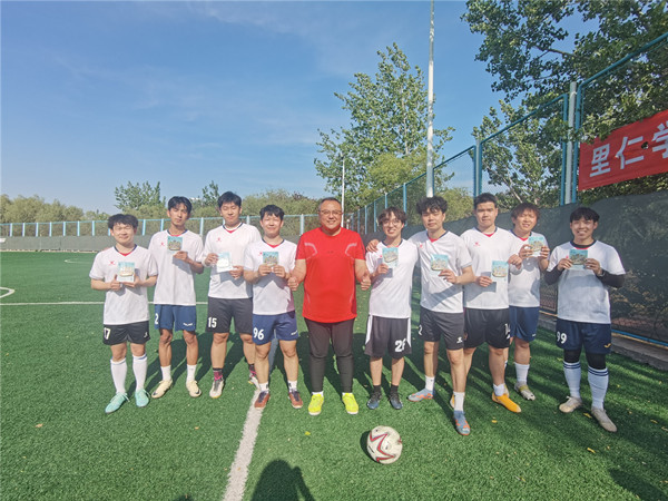 院足球队队长、刚刚考取福建理工大学硕士研究生的张栩亮同学随后发言,他的话语中充满了对此次足球赛的珍视,感恩母校的培养和教诲,希望同学们能够尽情享受足球带来的快乐,在绿茵场上留下宝贵的青春记忆;他呼吁大家以球为媒,传承和弘扬体育精神,展现出里仁师生的时代风采和精神风貌,让这场足球赛成为母校的一张亮丽名片。其他毕业生队员也依次向老师们汇报个人考研、就业情况。大家纷纷表示,这不仅仅是一场比赛,更是一次难得的机会,让大家能够再次聚在一起,回忆在学校期间的点点滴滴。