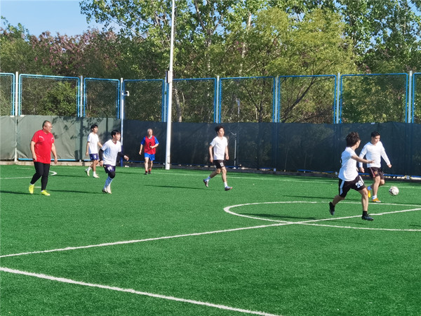 尚雪梅为比赛开球。瞬间,场上的气氛被点燃,双方队员如离弦之箭,奋力拼抢,你来我往,互不相让。