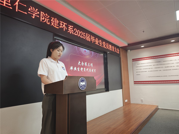 之后,系学工办主任范红丽老师对毕业生党员进行了殷切嘱托,她称赞毕业生党员能与学校合力,发挥党员在稳就业、保就业中的先锋模范作用。从坚定理想信念,始终保持共产党员的本色等五个方面对毕业生党员提出了希望和要求。她向毕业生发出“站好最后一班岗,继续发挥党员的先锋模范作用,为2025届毕业生的文明离校工作贡献力量”的倡议。她希望党员同志们牢记“厚德、博学、求是”的校训,坚守“诚实守信、团结互助”的做人准则。要做胸怀“国之大者”,将个人理想融入民族复兴伟业。她寄语党员同志学纪律明责任,始终保持初心,把为人民服务的思想刻在骨子里。